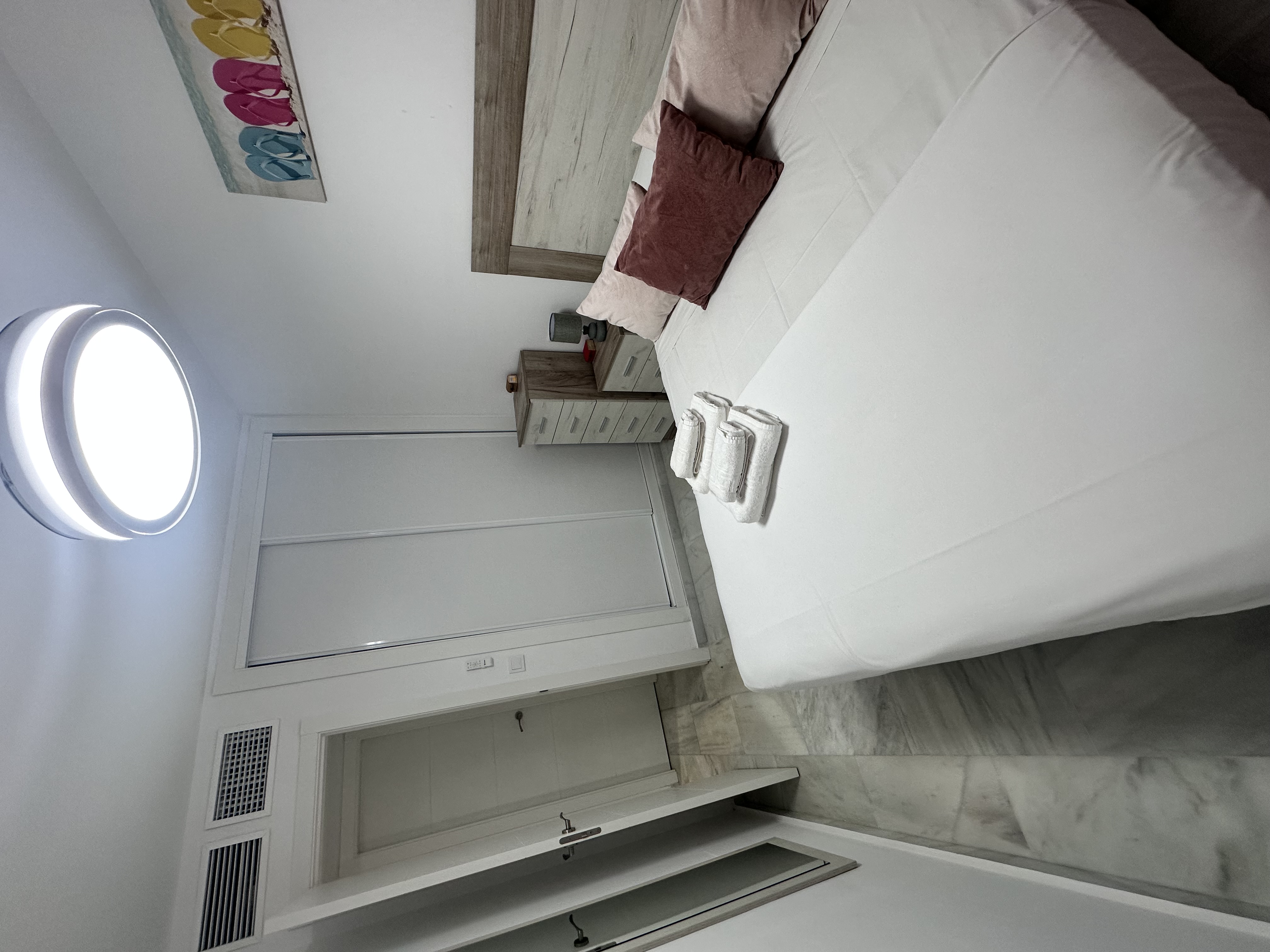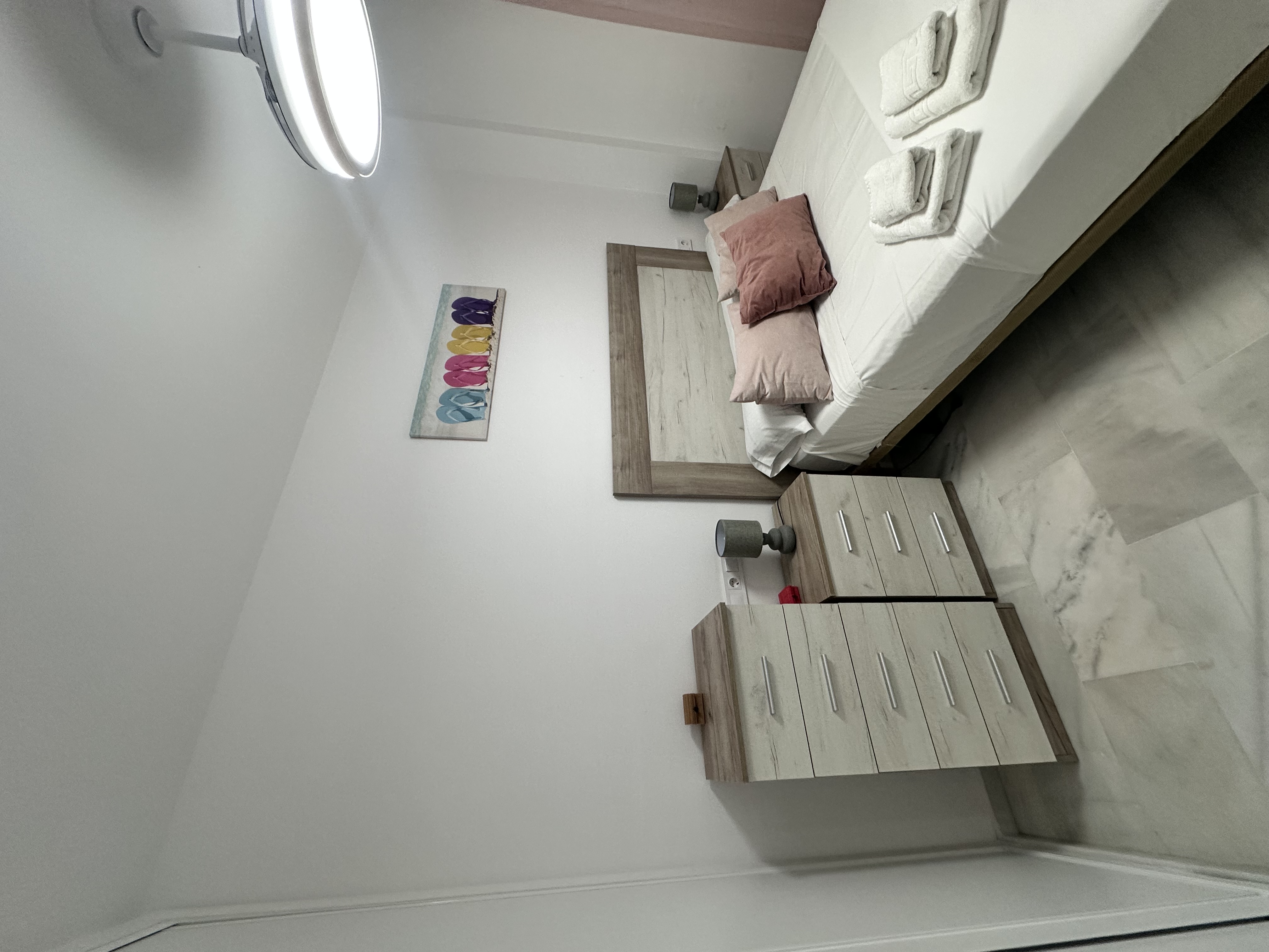 1 habitación con cama doble, armario empotrado, 2 mesitas de noche, sinfonier y espejo.